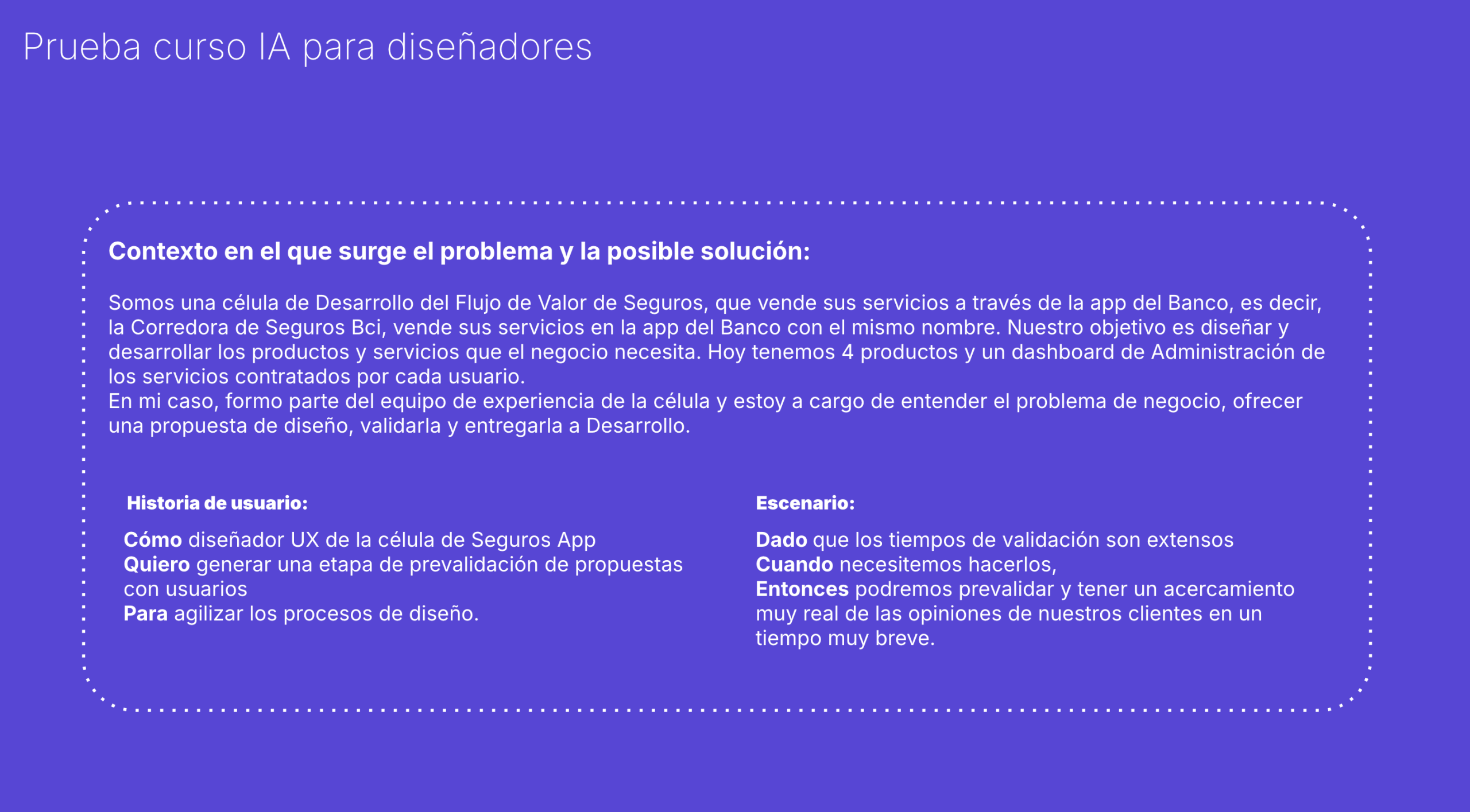 Diseño de un MVP de herramienta basada en IA generativa, que simula la validación de decisiones de diseño usando: