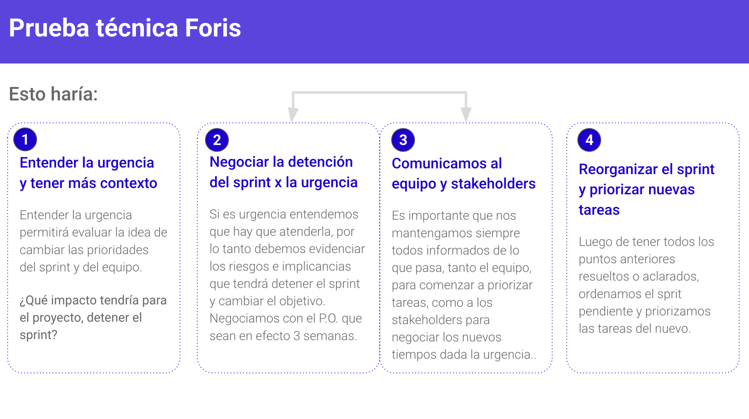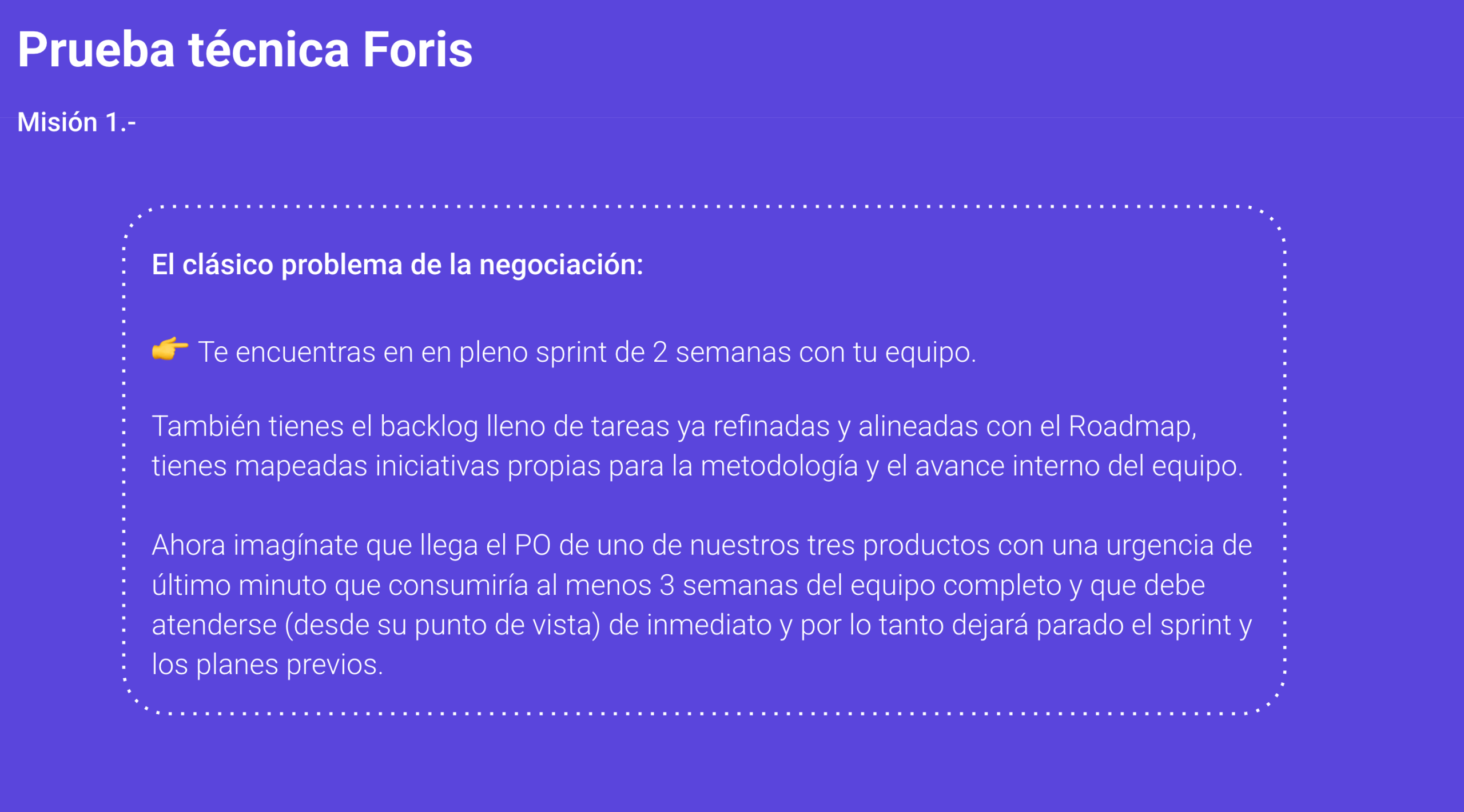 Negociar escenarios realistas con el PO, identificando riesgos y alineando expectativas.