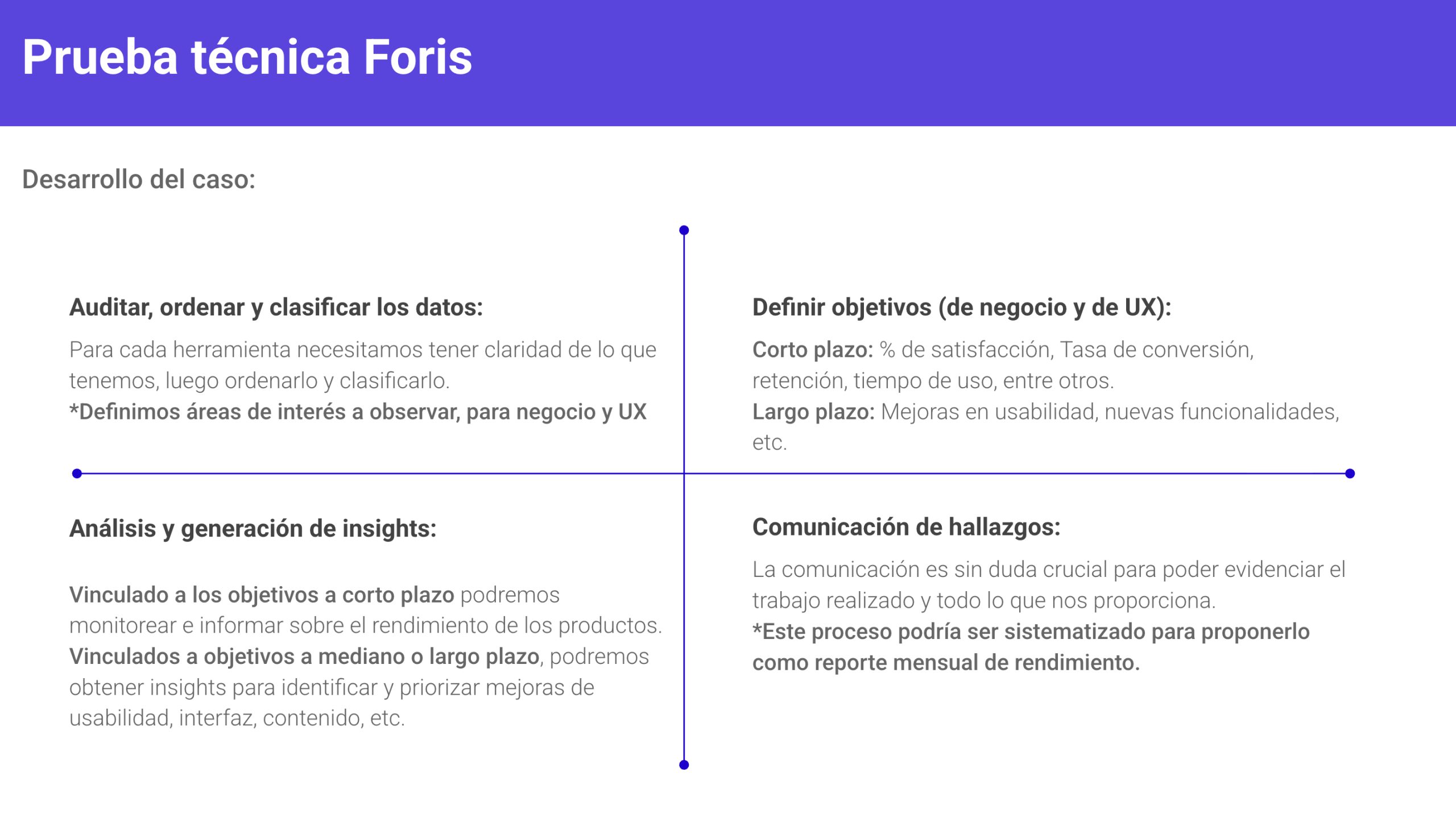 Este ejercicio fue una oportunidad valiosa para demostrar que el diseño UX no se limita a interfaces, sino que se extiende al liderazgo estratégico, la comunicación efectiva con stakeholders y la incorporación de prácticas basadas en datos.
