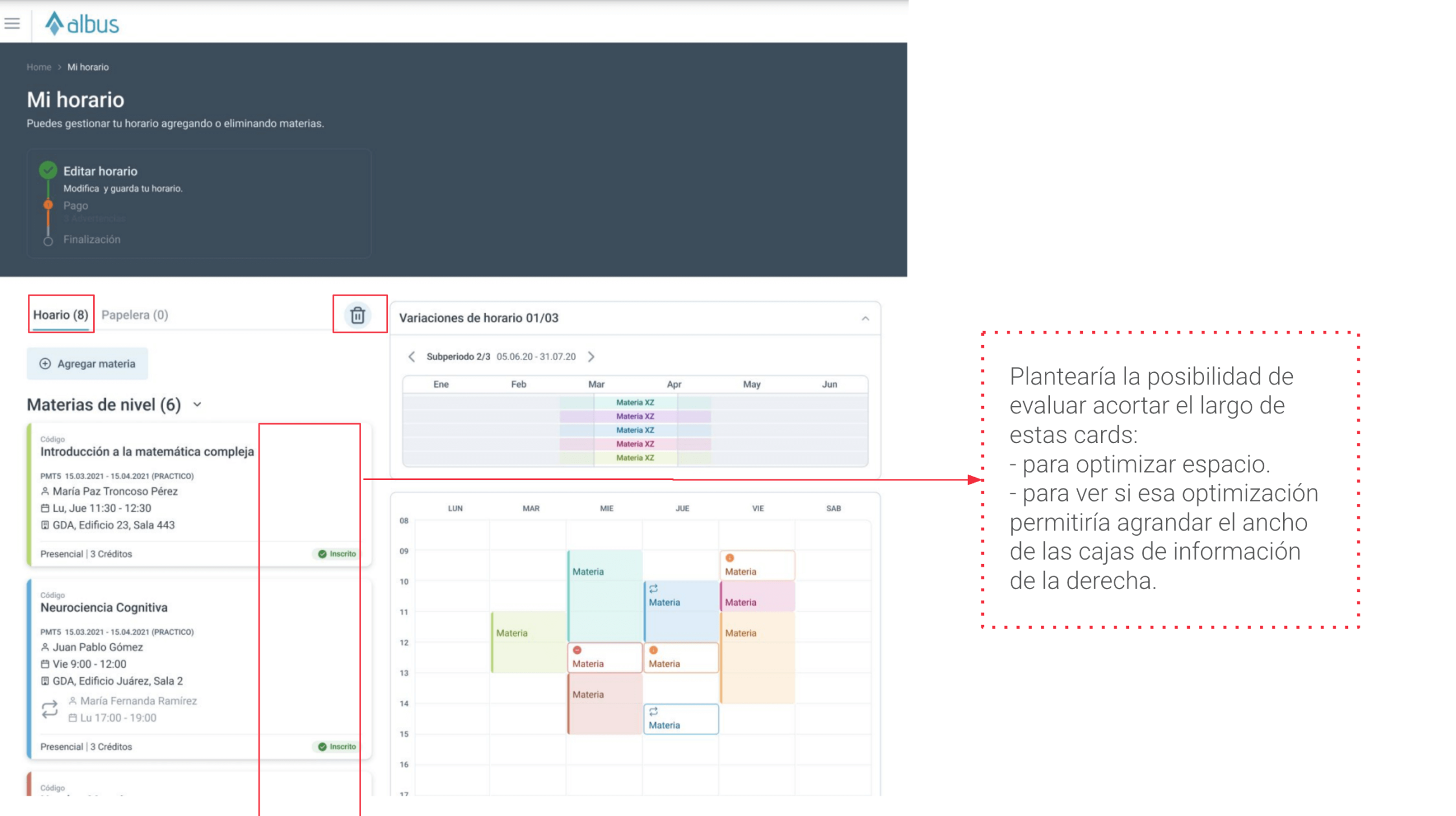 Revisar y proponer mejoras para la vista de inscripción de materias en una plataforma educativa. Analizar la experiencia desde la perspectiva UX/UI, proponiendo oportunidades de mejora y métodos de validación.